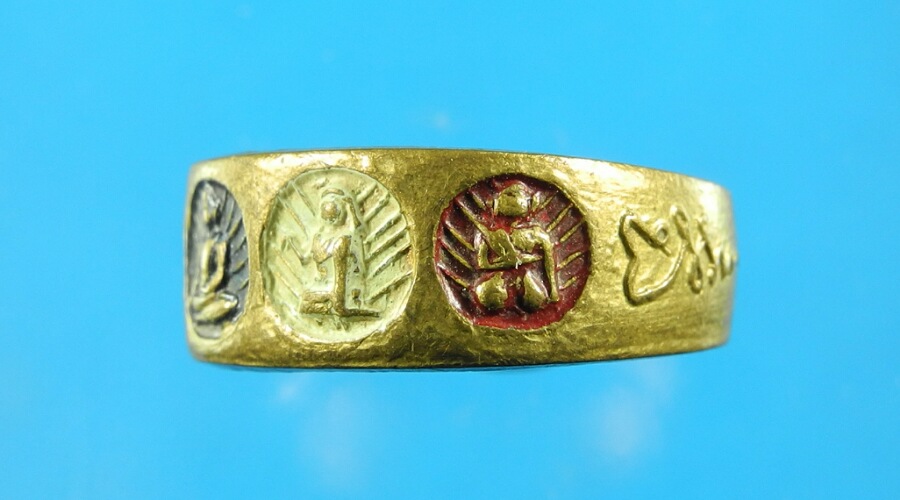 แหวนพระเจ้าห้าพระองค์ ลงยา ไม่ทราบที่ เส้นผ่าศูนย์กลาง 1.9 ซม. |