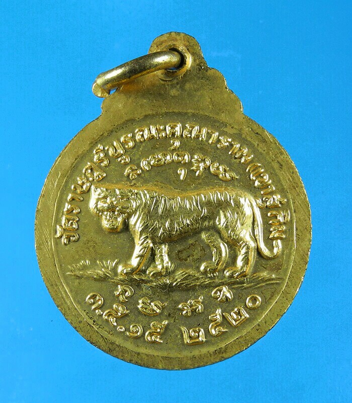 เหรียญหลวงพ่อสมชาย วัดเขาสุกิม พิมพ์เล็ก หลังเสือ กะไหล่ทอง |