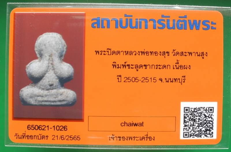 ปิดตาพิมพ์ชลูดขากระดกหลวงพ่อทองสุข วัดสะพานสูง พร้อมบัตรการันตีพระ |